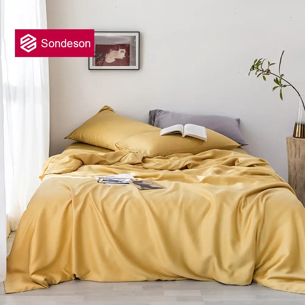 Sondeson النساء 100 الحرير الأصفر طقم سرير الجمال الحرير صحي الجلد الملكة الملك حاف الغطاء ورقة مسطحة المخدة غطاء لحاف Aliexpress