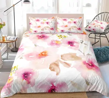 رشيقة الوردي ديزي مع الندى 3d طباعة الزهور مجموعة مفروشات الملكة حجم 100 القطن المنسوجات المنزلية ملاءات السرير غطاء لحاف وسادة القضية A302