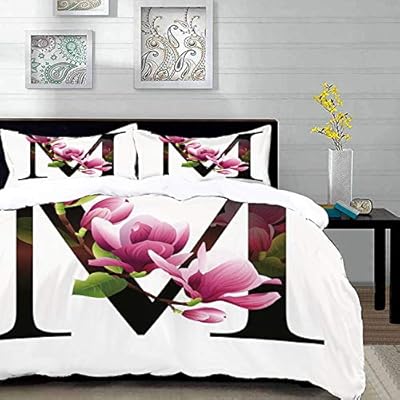 مجموعة الفراش حرف M ماغنوليا فلوريت الكرامة ونبل التعبير عن الزهور في تصميم الأبجدية وردي أخضر أسود غطاء لحاف واحد وسائد 50 80 سم Buy Online At Best Price In Uae Amazon Ae