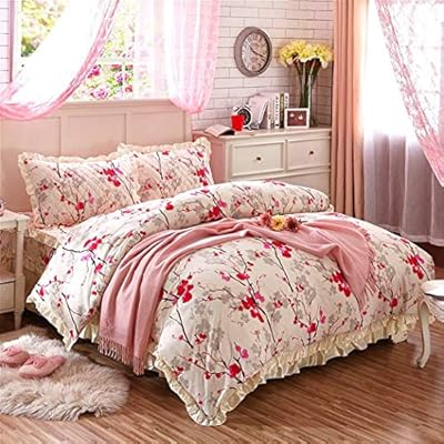 الزهور الرومانسية 100 القطن مجموعة الفراش رث وردي زهرة طباعة خمر الكشكشة غطاء لحاف مجموعة ملاءات السرير وسادة شام 2m King Size 4pcs Amazon Ae