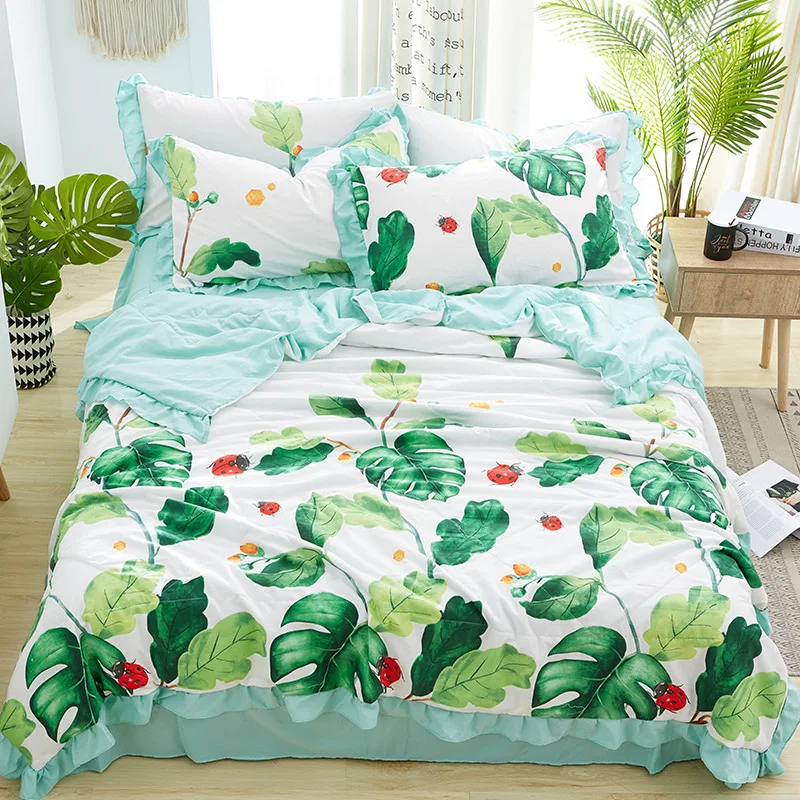 غسلها لحاف من القطن مجموعة 4 قطعة غطاء السرير الزهور المطبوعة لحاف مبطن غطاء السرير المخدة المفرش الملك حجم الصيف بطانية غطاء اللحاف Aliexpress