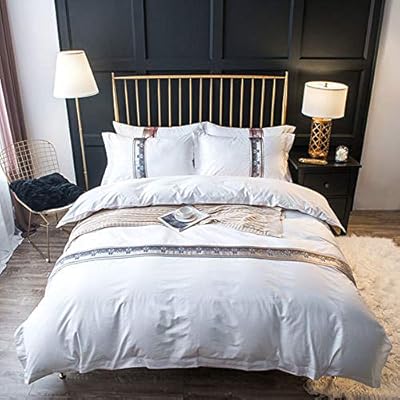 طقم ملاءات سرير من الخيزران الفاخر باللون الأبيض من Qtta مجموعة سرير مطرزة مزدوجة مقاس كوين مزدوج مزدوج غطاء لحاف غطاء سرير Amazon Ae