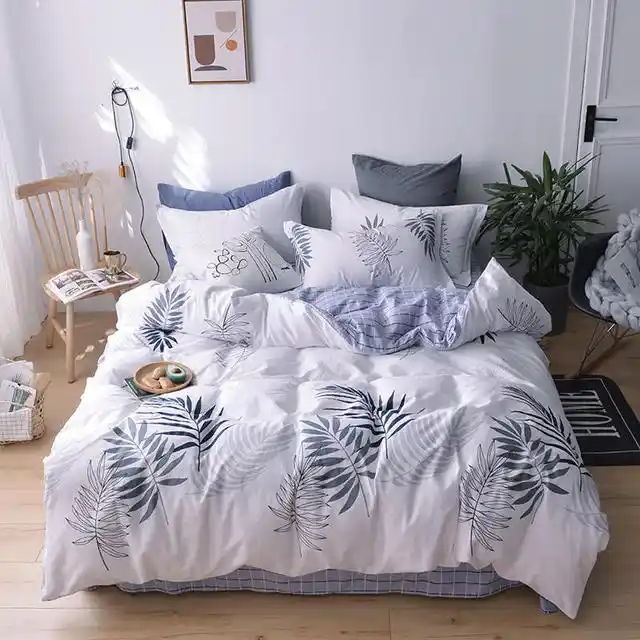 صيف جديد الحد الأدنى الفراش مجموعات الحبر الأزرق اللون دوفر غطاء لحاف غطاء سرير رمادي المخدة لينة مريحة الملك الملكة كامل في مجموعات الفراش من المنزل والحديقة على Www Unohama Club Store