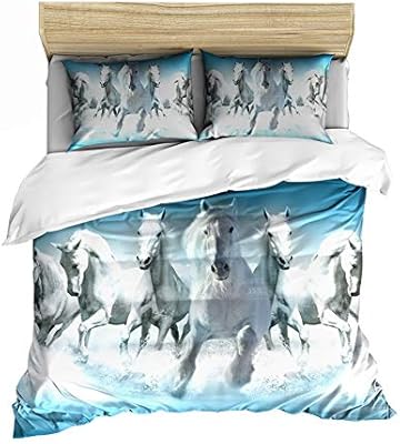 Yyhqhe موضوع فندق الفراش مجموعة 3d الحصان الأبيض الفراش مجموعة غطاء لحاف غطاء وسادة 2 3 قطع الظلام الحصان الجري الفاخرة الفراش المنسوجات المنزلية Us Twin 172x218cm Amazon Ae