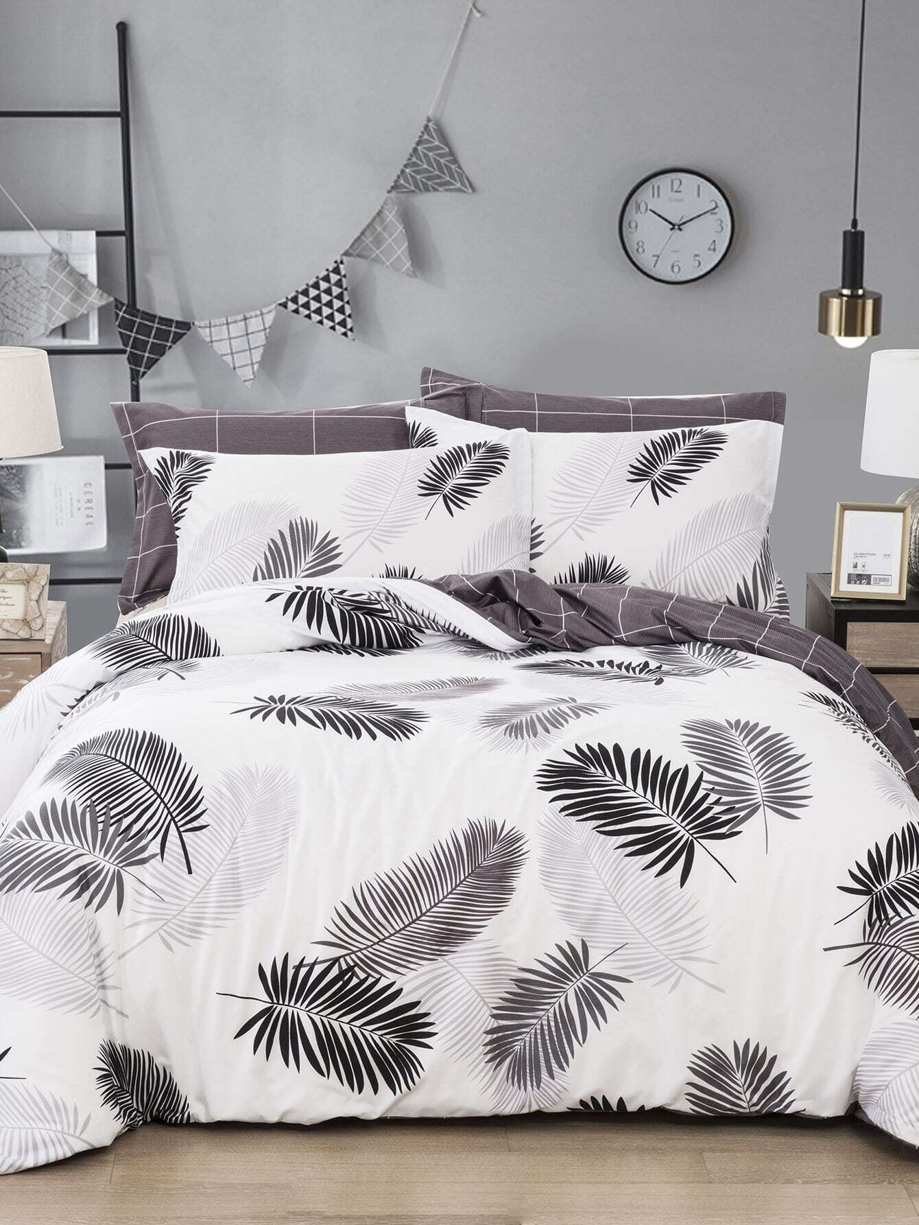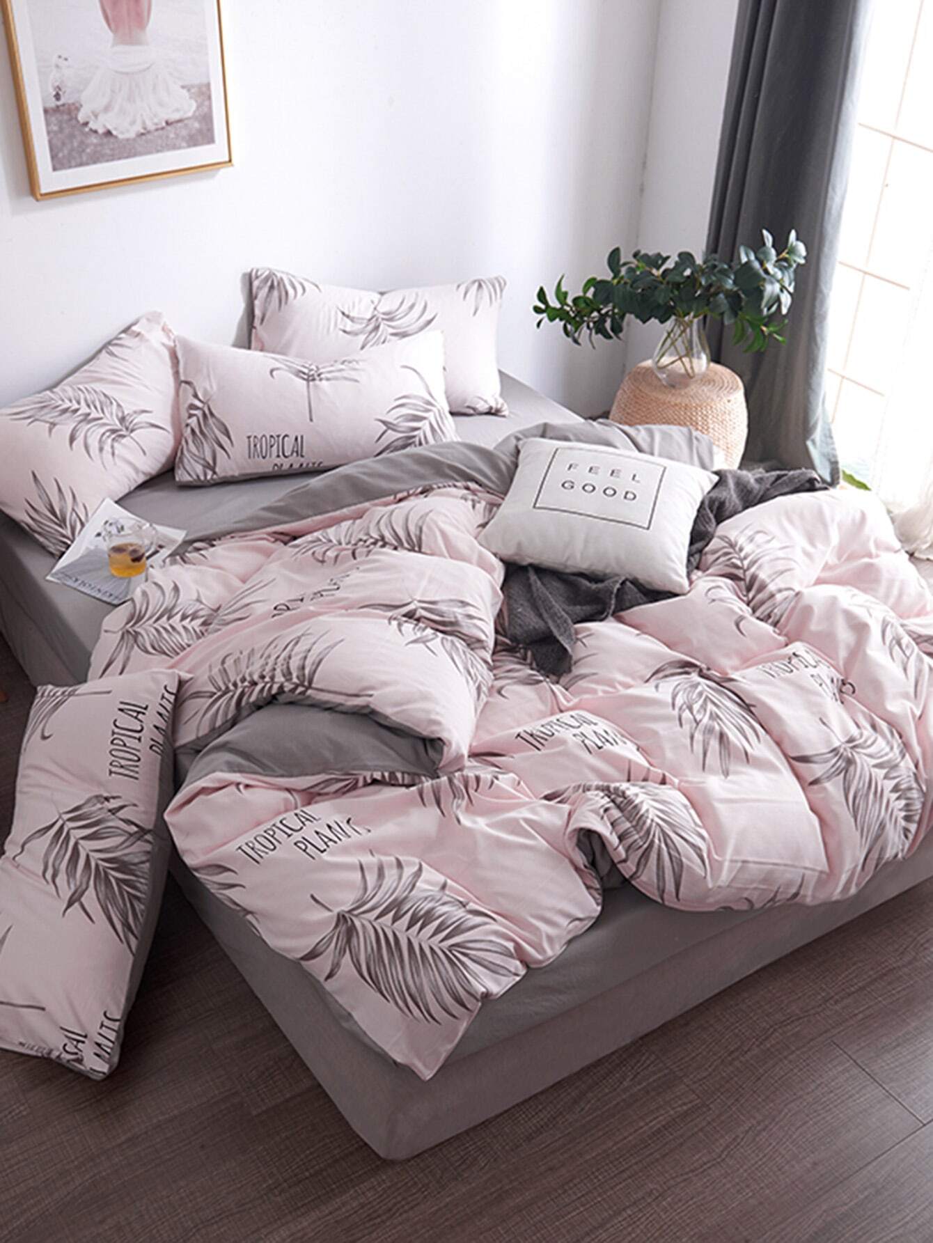 4 قطع مجموعات مفروشات كاملة من النباتات الاستوائية أغطية القطن غطاء لحاف مجموعة أغطية الوسائد الرئيسية الملك 220x240سم Double 200x230cm Amazon Ae
