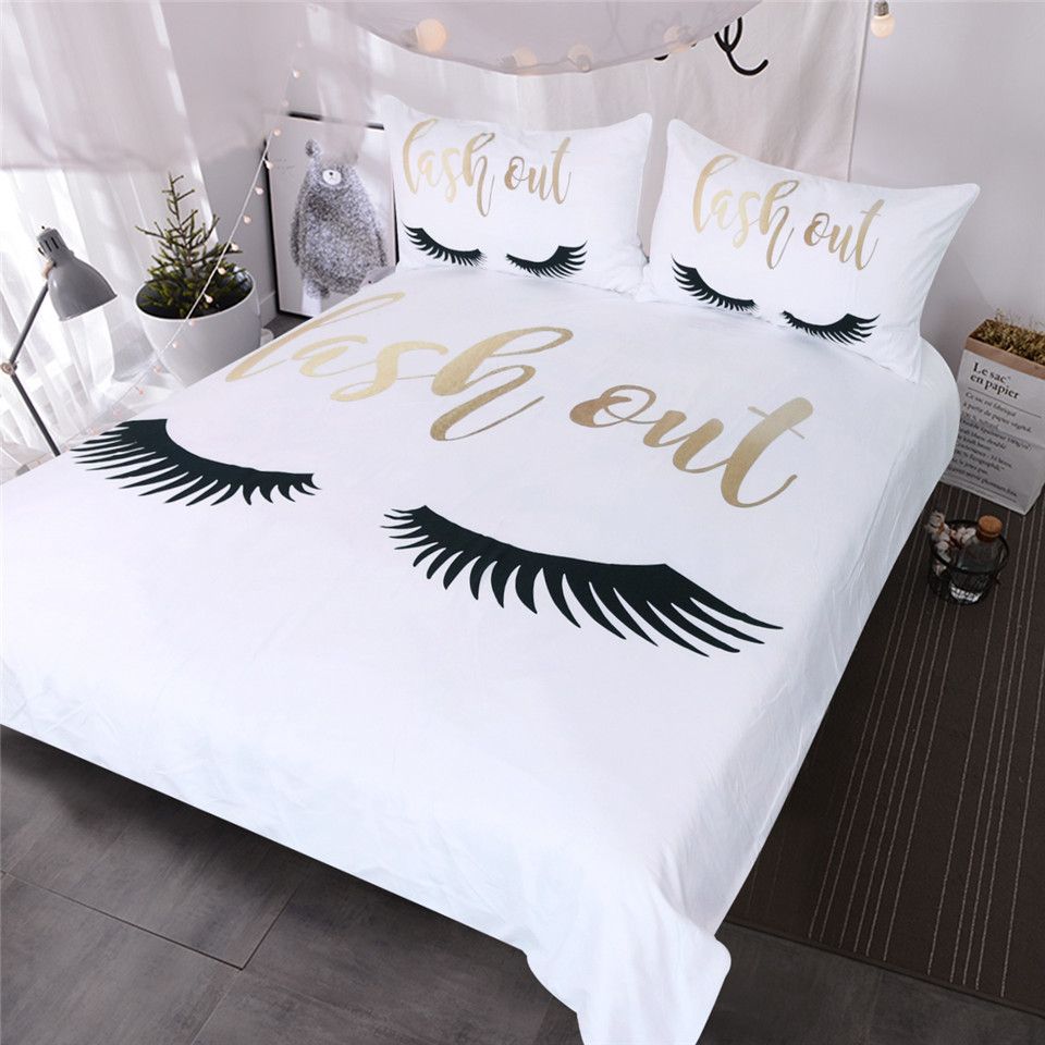 رمش الفراش الملكة الذهب والأسود لطيف عيون نمط غطاء لحاف مجموعة 3 قطعة غطاء لحاف مضحك للفتيات الموضة 2020 من Bluesky11 149ر س موبايل Dhgate