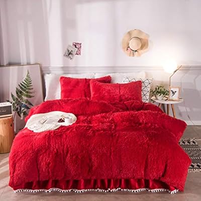 طقم غطاء لحاف 4 قطع مصنوع من الفراء فائق النعومة مجموعة أغطية سرير من الفانيلا الدافئة بلون موحد غطاء لحاف للفتيات في الشتاء فانيلي احمر 6ft 180cm Amazon Ae