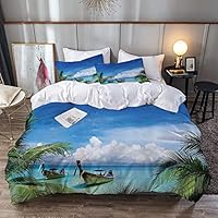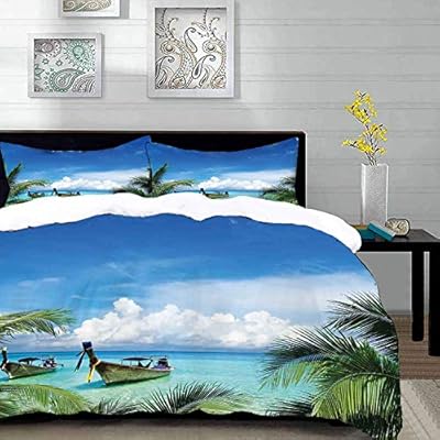 مجموعة الفراش السفر شاطئ هاواي الغريبة مع أشجار النخيل وقوارب الصيد صورة الجنة الفيروز الأزرق الأخضر غطاء لحاف واحد وسائد 50 80 سم Amazon Ae