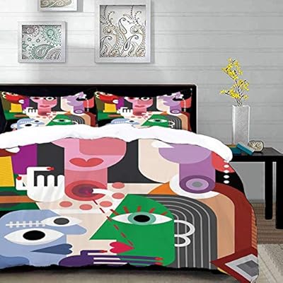 مجموعة الفراش الفن المرأة مع العواطف الحديثة مجردة اللوحات الملونة نمط المرح الأشكال تصميم الطباعة الزخرفية متعدد الألوان غطاء لحاف واحد وسائد 50 80 سم Amazon Ae
