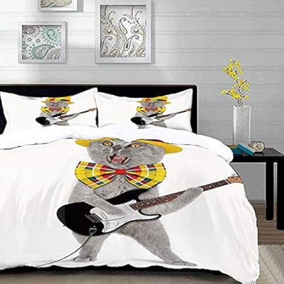 مجموعة الفراش القط محب موسيقي كيتي العزف على الغناء مع قبعة المرح عيد ميلاد الحزب فكاهة صورة ديكور متعدد الألوان غطاء لحاف واحد وسائد 50 80 سم Amazon Ae