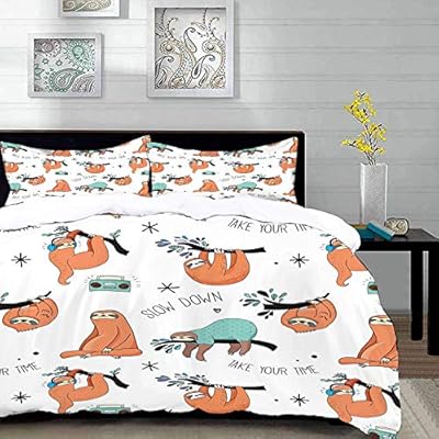 مجموعة الفراش كسلان نمط مع الكسلان مزود مزود بمكياج لطيف على فروفروفروفروع مزود بخيار المرح برتقالي أزرق فاتح أسود غطاء لحاف واحد وسائد 50 80 سم Amazon Ae