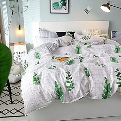Mkxi المنزل لحاف غطاء مجموعة زر إغلاق خمر غطاء لحاف الطباعة مجموعة بيضاء الملكة الخضراء الاستوائية يترك نمط القطن الفاخرة عكس جمع الفراش Buy Products Online With Ubuy Kuwait In Affordable