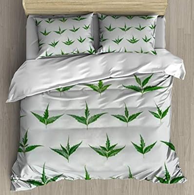 طقم سرير ناعم مطبوع عليه أوراق النيم الخضراء الطازجة على خلفية بيضاء درزات استوائية وغطاء لحاف نمط غطاء لحاف طقم غطاء لحاف مع غطاء وسادة حجم الملكة Amazon Ae
