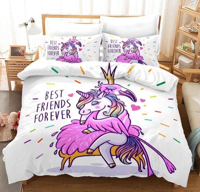 يونيكورن مجموعة مفروشات 3d قوس قزح الحصان 3 قطع أغطية الملكة المملكة المتحدة حجم الاتحاد الافريقي حجم لطيف يونيكورن أطفال حاف الغطاء ملون وردي أزرق جرلي المفارش 2020 من Viki9411 216 04ر س