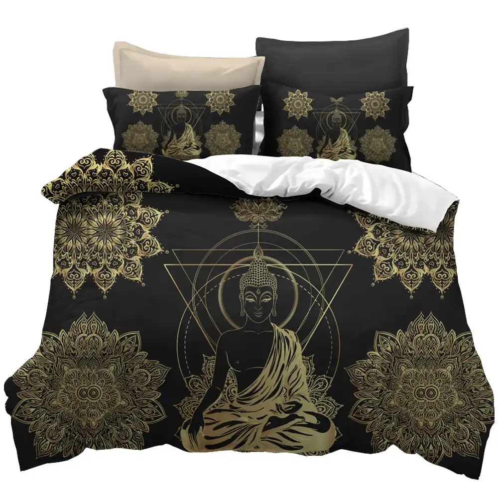 ماندالا بوذا الفراش مجموعة البوذية الفراش الذهبي لوتس بوذا السرير المنزل غرفة نوم الديكور غطاء لحاف مجموعات مع سادات مجموعات الفراش Aliexpress