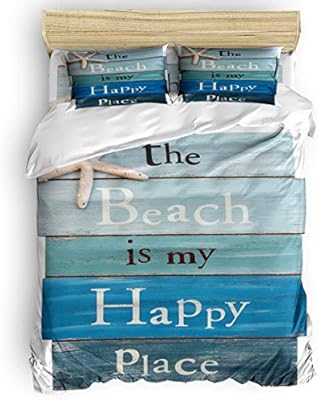مجموعات السرير أغطية لحاف 4 قطع مجموعة ملاءات سرير ديكور المنزل The Beach Is My Happy Place مجموعة أغطية لحاف بنمط ملون تتضمن 1 غطاء لحاف 1 ملاءة سرير 2 كيس وسادة
