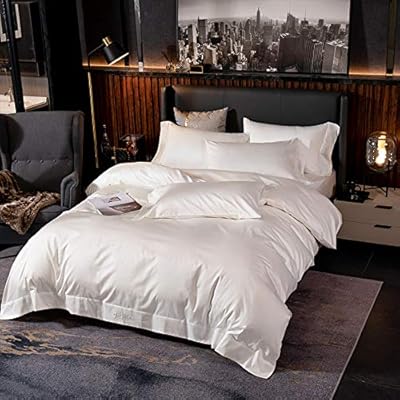 غطاء لحاف بلون سادة مجموعات سرير مطرز فاخر مريح فائق النعومة 60s قطن ساتان غطاء لحاف مسطح أغطية وسائد 4 قطع للمنزل فندق غرفة نوم أبيض مزدوج Amazon Ae