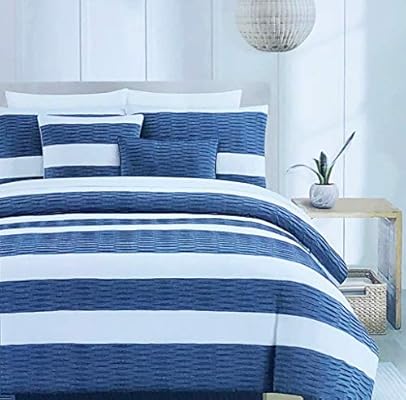 مجموعة أغطية لحاف 3 قطع قماش ومظلة مخططة أفقية واسعة باللون الأزرق على طراز عتيق أبيض مجموعة غطاء لحاف فاخر 100 قطن كامل ملكي Amazon Ae