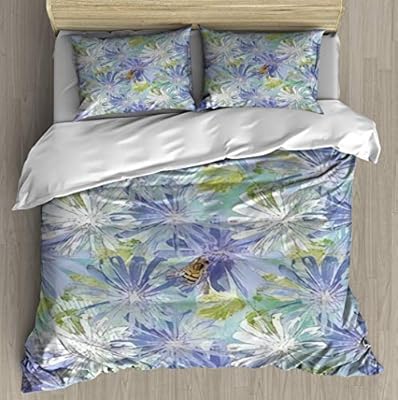 طقم فراش ناعم مطبوع نمط الزهور بدون خياطة نحل باللون الأزرق والأبيض وأبيض وأغطية لحاف أخضر غطاء وسادة نمط مجموعة أغطية لحاف مع كيس وسادة مقاس مزدوج قطن King Size Amazon Ae