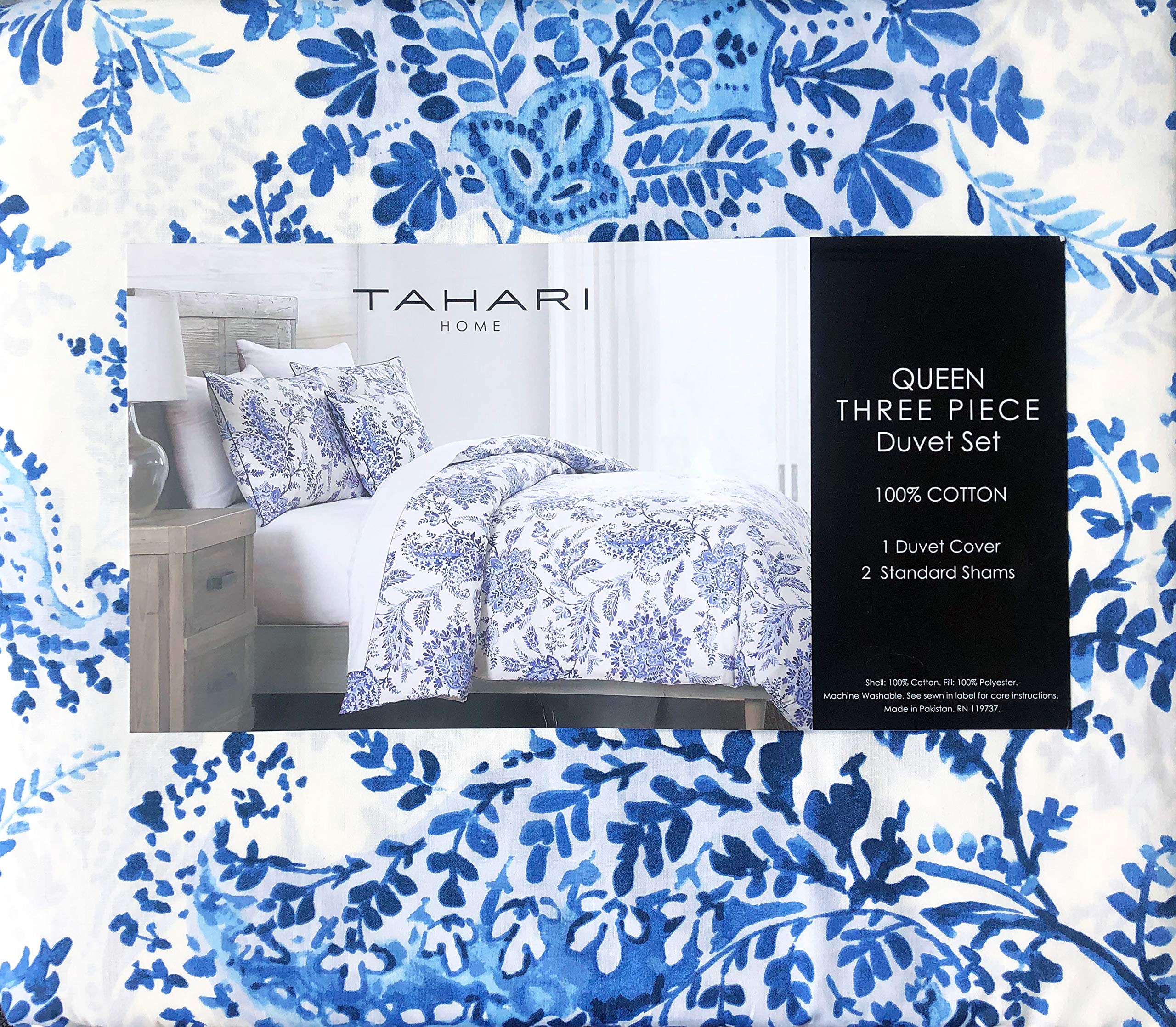 مجموعة أغطية اللحاف المكونة من 3 قطع من Tahari Home Maison بنمط الأزهار باللون الأزرق على اللون الأبيض الملكة Amazon Ae
