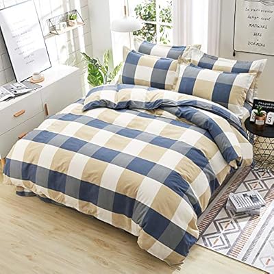مجموعة غطاء لحاف منقوش باللونين الأسود والأبيض من Nokolulu مع سحاب إغلاق نسيج قطني مقلم نمط شبكة جاهزة طقم مفروشات مطبوع فاخر وناعم ومسامي ومريح Amazon Ae