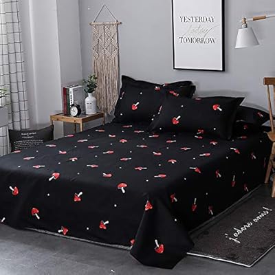 طقم مفارش سرير كامل 4 قطع باللون الأسود والفطر على غطاء أسود أغطية أغطية أغطية أغطية أغطية أغطية وسائد من القطن الناعم المزدوج 200x230سم Double 200x230cm Amazon Ae