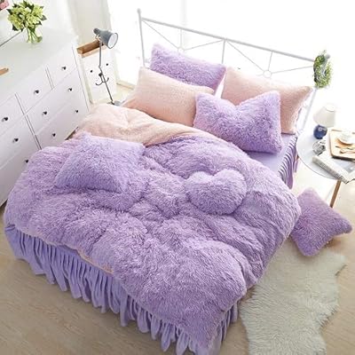 الأرجواني رمادي أزرق أبيض براون الشتاء الصوف ورد من الأقمشة التطريز طقم سرير الفانيلا المخملية غطاء لحاف غطاء سرير المخدة Aliexpress