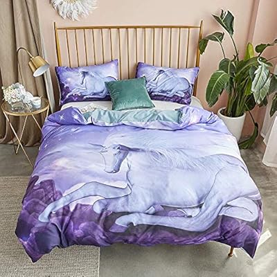 مجموعة غطاء لحاف يونيكورن طقم سرير للأطفال الأولاد والبنات مع سحاب وحيد القرن الأرجواني الملك 220 230 سم Amazon Ae