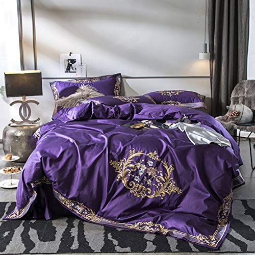 4 قطعة الفاخرة طقم سرير الملك الحجم سرير ملكة مجموعة السرير الأرجواني الأبيض ورقة غطاء لحاف بارد الشعور سليك مثل مجموعة السرير ملاءات حافالفراش مجموعة الملك Aliexpress