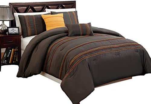 طقم لحاف 5 قطع من Legacy Decor بتصميم خطوط متداخلة باللون البني مع نقش مارجولد والبرتقالي والأصفر بتصميم مخطط مقاس كامل كوين وكينج مايكرو فايبر Full Amazon Ae