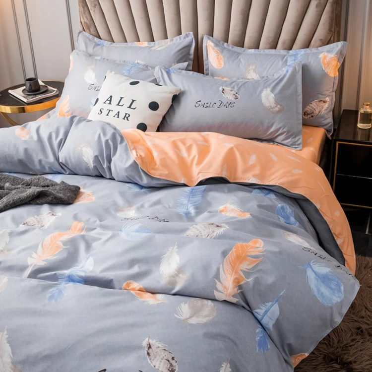 رمادي فاتح وبرتقالي الملكة حجم ريش حاف مجموعات الفراش مجموعات الفراش Aliexpress