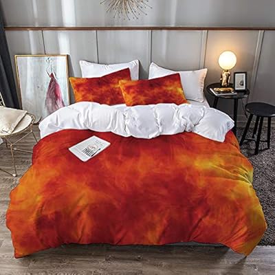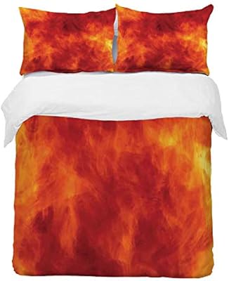 مجموعة الفراش اللون البرتقالي رسم تصميمي لانفجار النار نابض بالحياة حارق الحرارة تصميم موضوع فن الطباعة ديكور أصفر برتقالي غطاء لحاف واحد