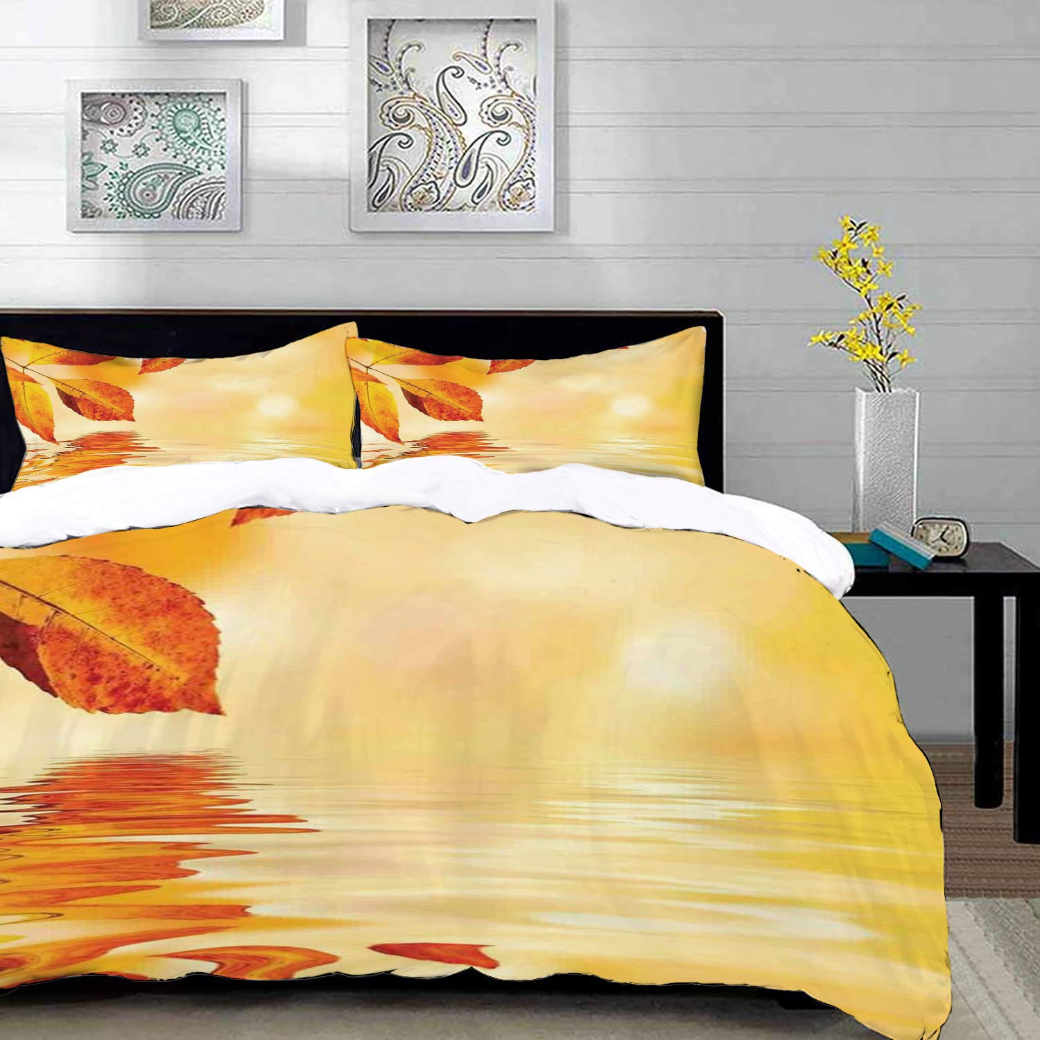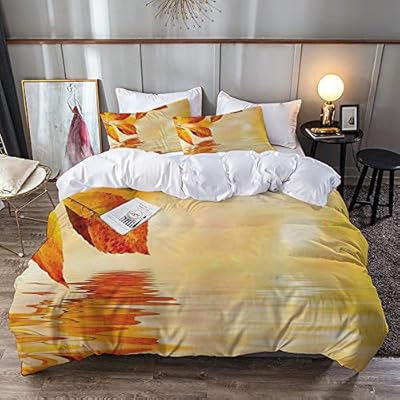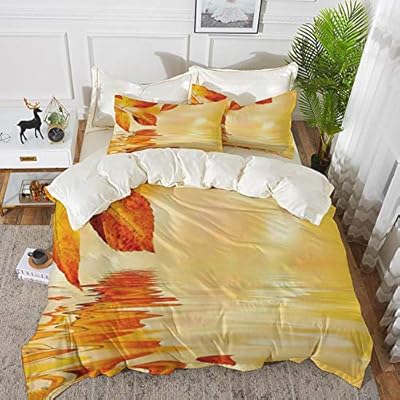 مجموعة الفراش البرتقالي المحترق أوراق شجر القيقب الخريف على الماء مع الصوفي السحري عرض الحزن الشمس الفن الزخرفي البرتقالي الذهبي غطاء لحاف واحد وسائد 50 80 سم Amazon Ae