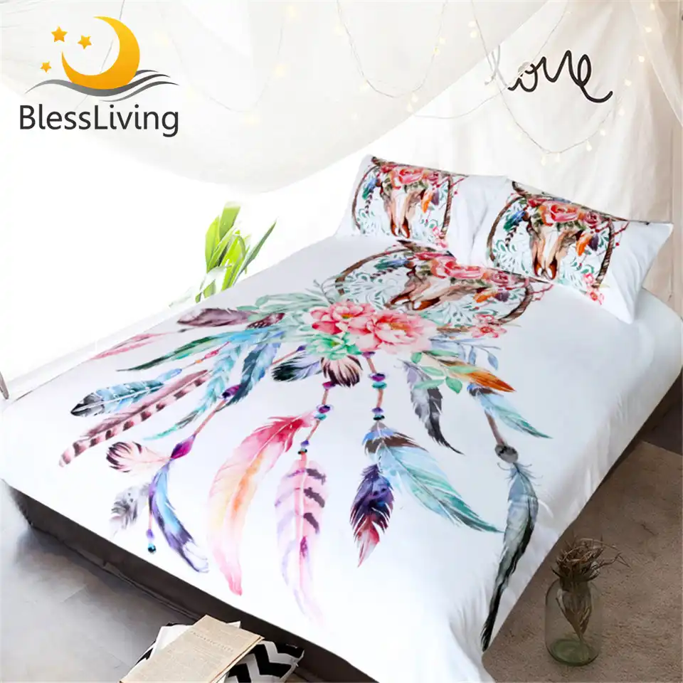 Blessliving طقم سرير Buffalo الجمجمة مع الريش غطاء السرير دريكاتشر جنوب غرب بوهيميا شيك ملون القبلية حاف الغطاء Aliexpress