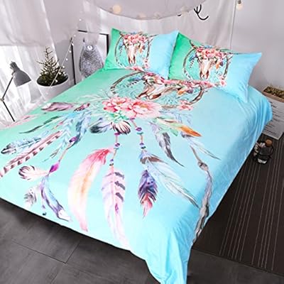 مجموعة سرير بيلديفينغ بوهو شيك بجمجمة بفلو مع ريش دريم كاتشر من جنوب غربي بوهو شيك مزدوج تركواز Amazon Ae