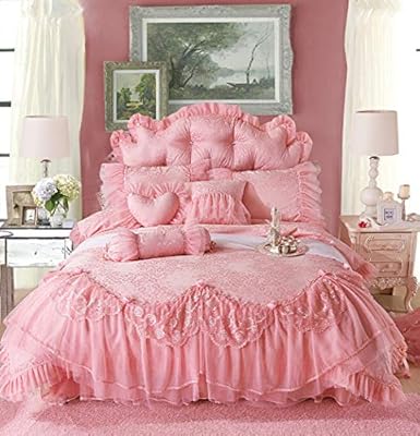 الشرقية الدانتيل الوردي الأحمر مجموعة فراش الزفاف الملكة الملك الحجم مفرش قطن غطاء السرير حاف الغطاء الملكة الملك الحجم Parure دي مضاءة في مجموعات الفراش من المنزل والحديقة على Agustinosgranada Club Store
