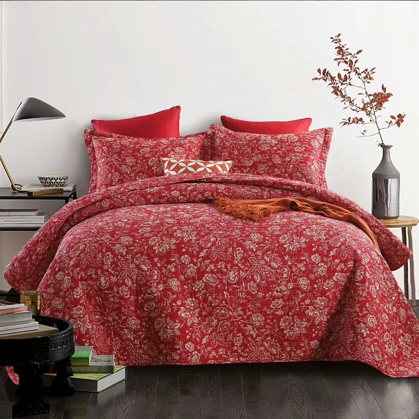 Chausub جودة الأحمر لحاف مجموعة 3 قطعة غسلها القطن لحاف المفرش المفرش غطاء ملاءات الملك الملكة حجم 230 250 سنتيمتر Aliexpress