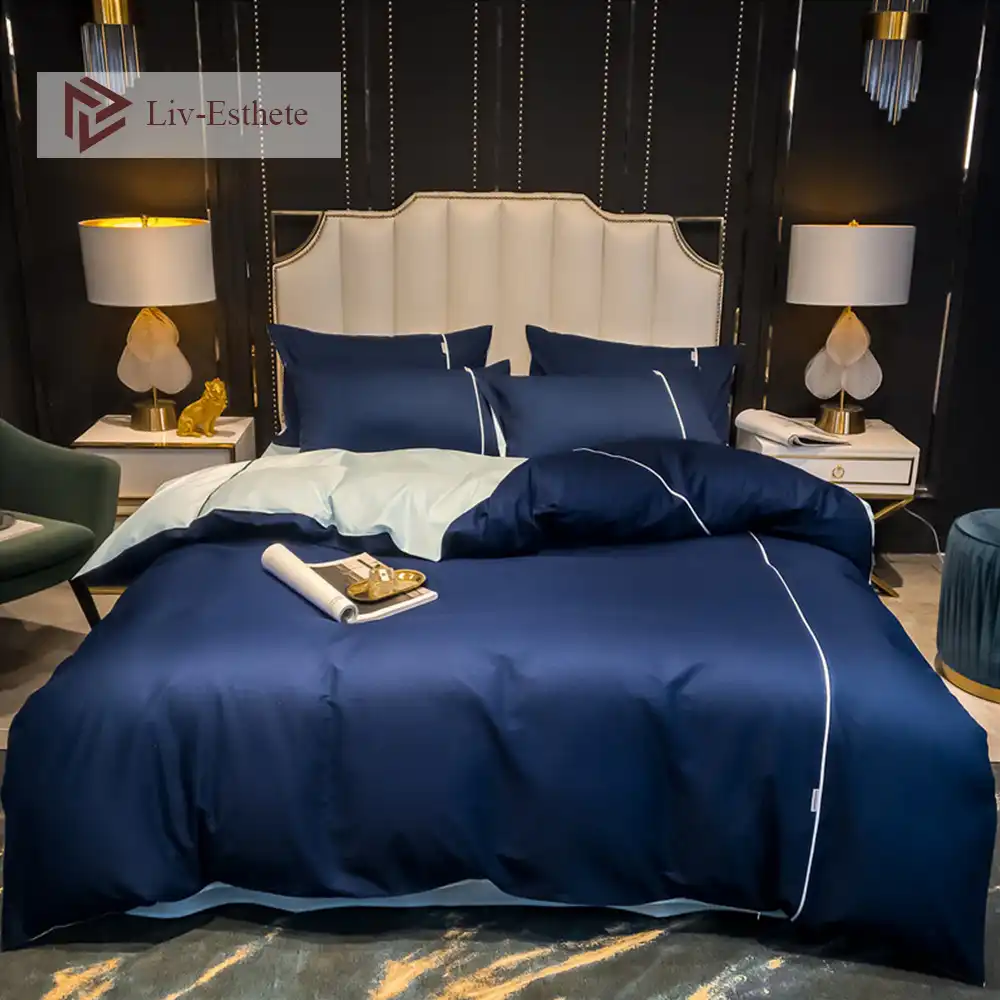 طقم سرير رجالي من Liv Esthet حديث أزرق 100 قطن سادة ناعم أغطية سرير طقم غطاء لحاف المخدة ملاءة مسطحة نساء كوين كينج Aliexpress