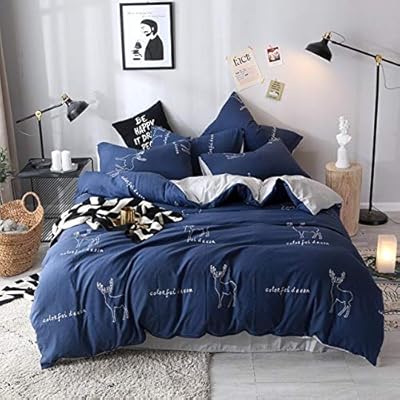 مجموعات حاف الغطاء 4 قطعات قطن لون سادة أزرق مطرز بسيط 300 4 قطع 1 غطاء لحاف 1 ورقة مسطحة 2 الشام 7689809 2020 100 43
