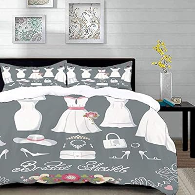 مجموعة الفراش زينة العرسان دش فستان الزفاف مع تفاصيل العروس أكياس الزهور الأبيض الوردي والفحم الرمادي غطاء لحاف واحد وسائد 50 80 سم Amazon Ae