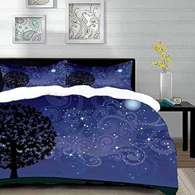 مجموعة الفراش ليلة مليئة بالنجوم شجرة على التل مع نجمة مليئة بالنجوم مجرة السماء والقمر مجرة درب التبانة النيلي الفحم رمادي أسود غطاء لحاف واحد وسائد 50 80 سم Amazon Ae