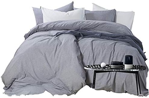 Bedsure مخطط القطن 45 و 55 الكتان غطاء لحاف الملكة حجم مجموعة رمادي فاتح
