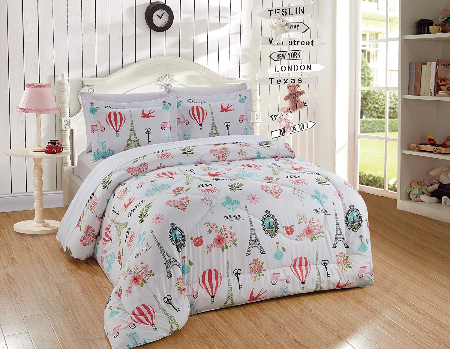 طقم لحاف سرير للأطفال المراهقين البنات من مجموعة سرير في حقيبة مع أزهار وبرج إيفل باريس أبيض وردي رمادي وأزرق Full Comforter Amazon Ae