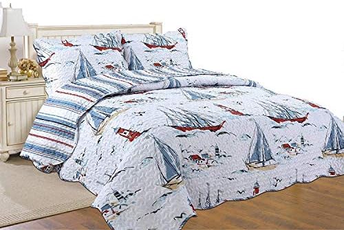 مفرش سرير ذو وجهين 3 قطع من All For You غطاء سرير طقم لحاف مطبوع عليه Coastal قارب البحر مايكرو فايبر Full Queen 86 X86 Amazon Ae