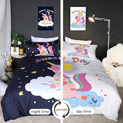 مجموعة غطاء لحاف وأغطية وسائد ديكوفوج يونيكورن 100 قطن سرير للأطفال والمراهقين تصميم مزخرف 2 في 1 ذو وجهين غطاء لحاف ناعم لا يسبب الحساسية كينج أسود Amazon Ae