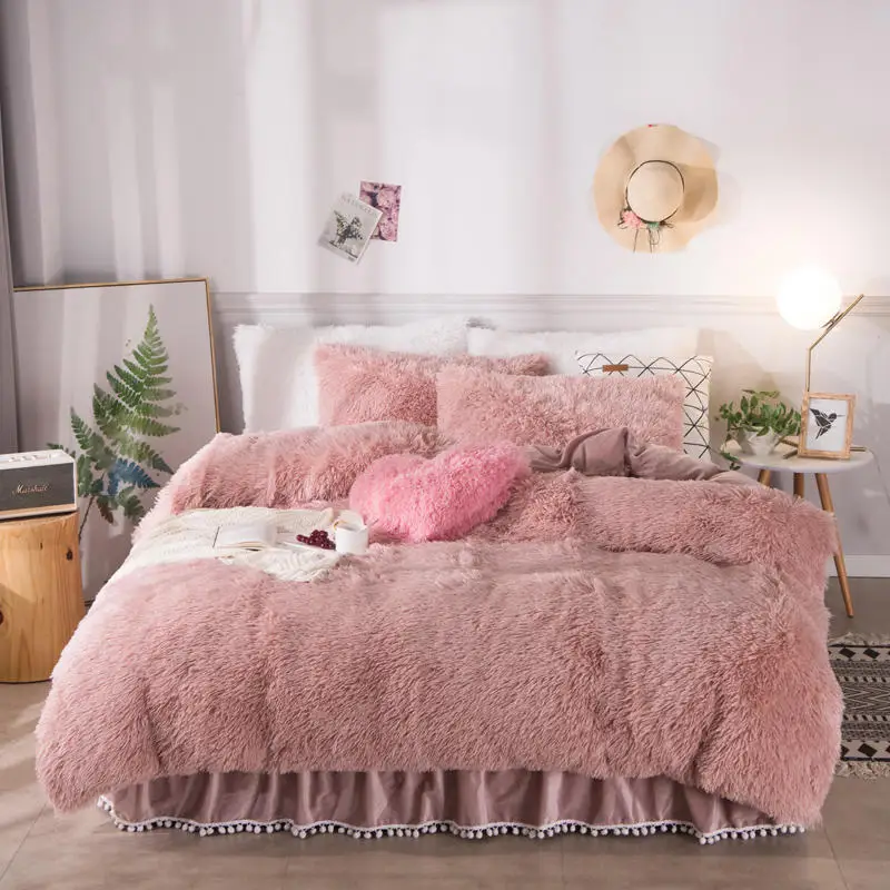 Fb1901001 الوردي الأبيض نسيج الصوف في فصل الشتاء سميكة الصرفة اللون مجموعة مفروشات المنك المخملية غطاء لحاف السرير ورقة الملك سرير الكتان وسادات 2020 من Fertelhomedecoration 379 89ر س موبايل Dhgate