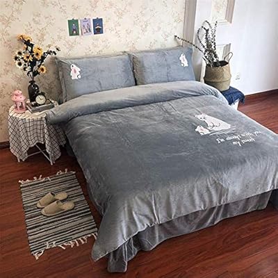 مجموعات غطاء اللحاف غطاء لحاف شتوي سميك دافئ من أربع قطع مجموعة مطرزة بحليب مزدوج الوجهين غطاء لحاف بلوري مخملي للأطفال ملاءة كيس وسادة 2 حوالي 19 200 230سم 200 230cm Amazon Ae
