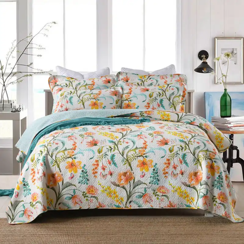 الأزهار طباعة المفرش لحاف مجموعة 3 قطعة غطاء لحاف مبطن القطن غطاء السرير المخدة الملك الملكة حجم 230 250 بطانية لحاف Aliexpress