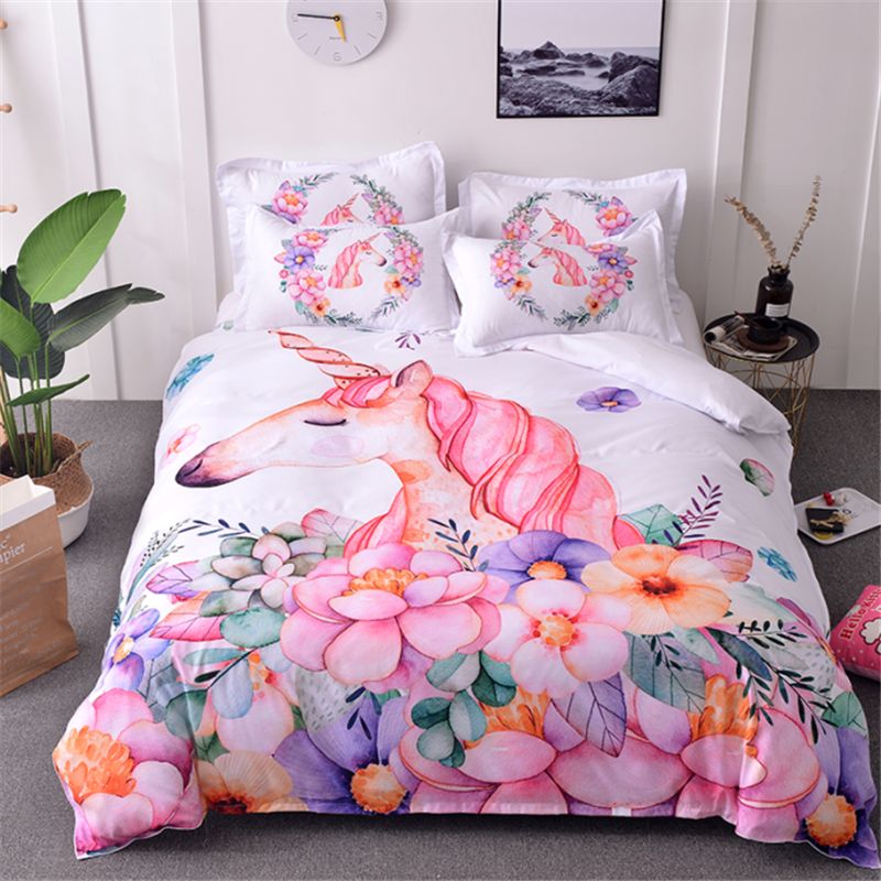 3d الكرتون مجموعة مفروشات يونيكورن غطاء سرير الأزهار الوردي الأبيض حاف الغطاء مجموعة ستوكات أغطية 3 قطع الفراش 2020 من Hybeddings 313 57ر س موبايل Dhgate