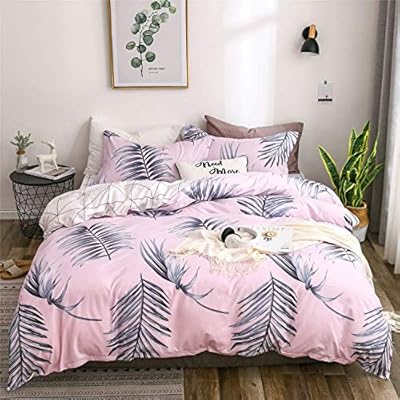 طقم لحاف مكون من 3 قطع غطاء لحاف 2 كيس وسادة 1 غطاء لحاف سرير مزدوج سرير وردي مجموعة لحاف غرفة النوم Jfycuican Amazon Ae